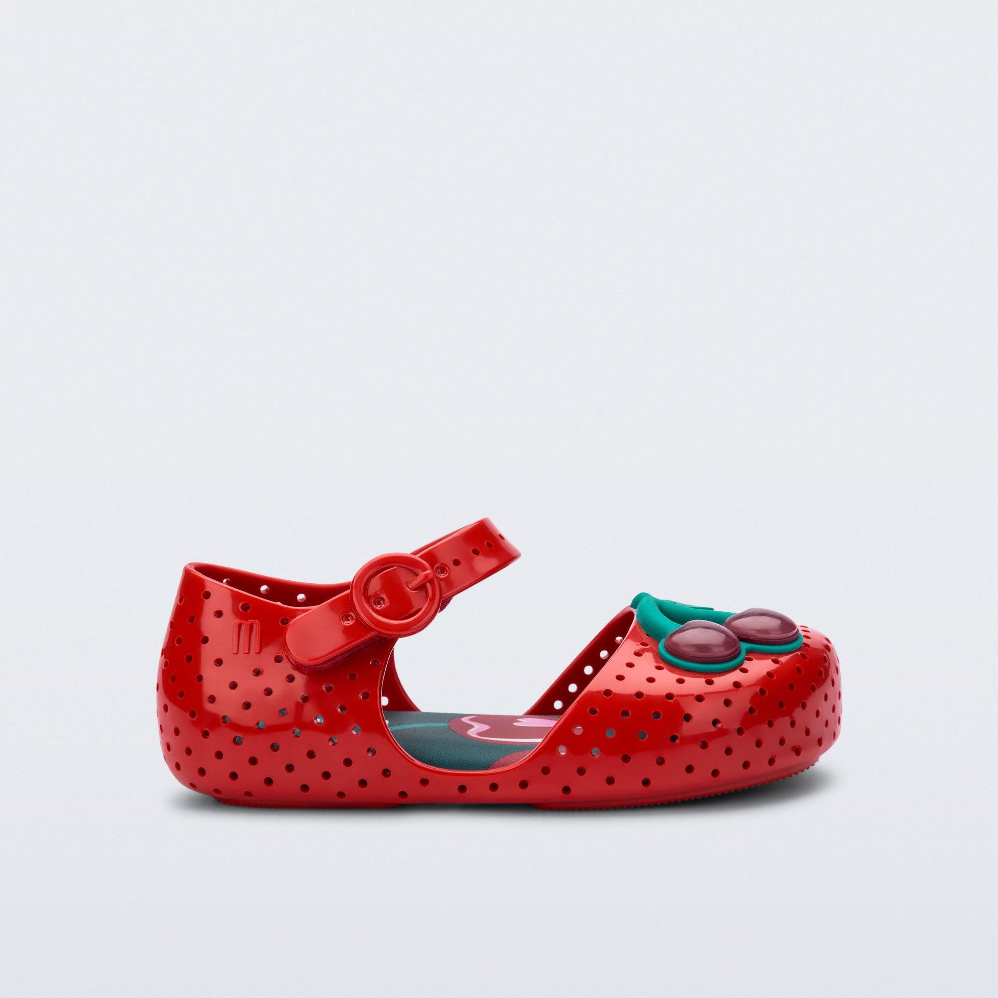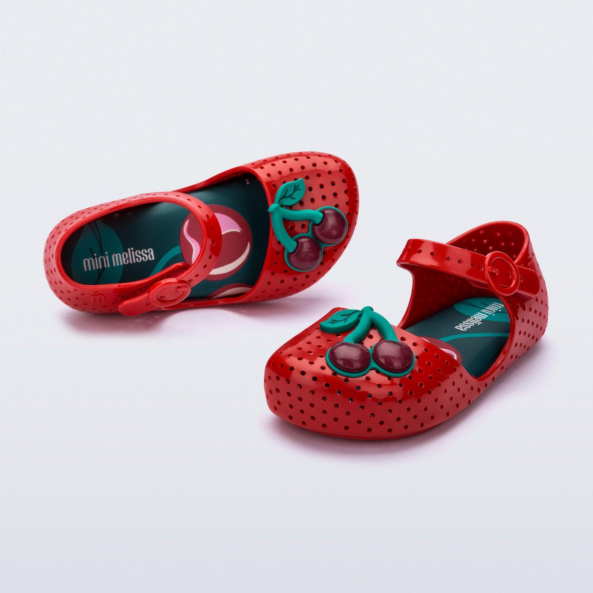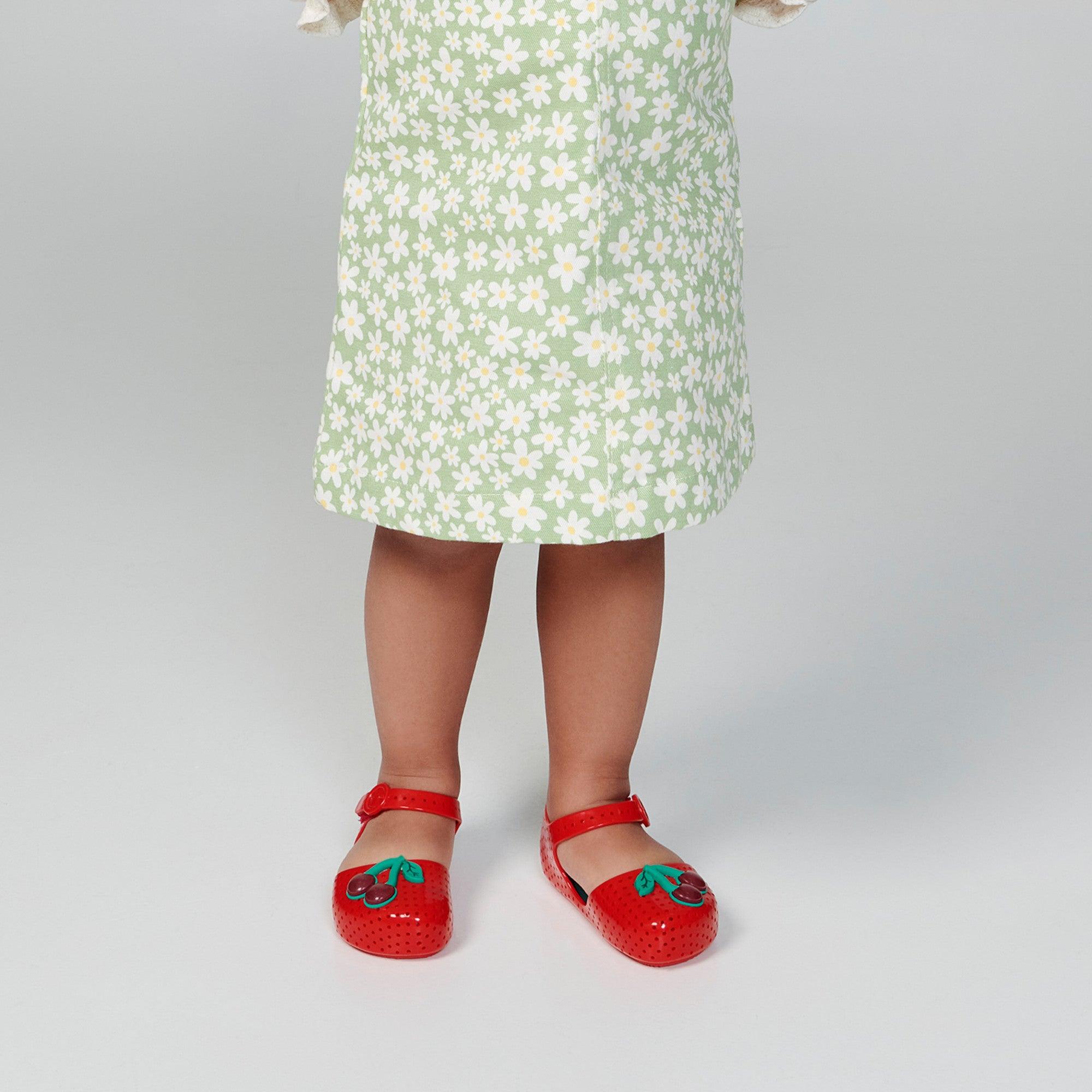 ลองจินตนาการถึงพื้นรองเท้าราบที่มีรายละเอียดรูขนาดเล็กตลอดแนวรองเท้า ซึ่งผสมผสานการออกแบบและความสะดวกสบายสำหรับเท้าของเจ้าตัวจิ๋วได้อย่างลงตัว Mini Melissa Furadinha การอัพเกรดแบบที่ยังคงความคลาสสิกของผู้ใหญ่ด้วยความน่ารักและโรแมนติก การตกแต่งเริ่มตั้งแต่โบว์ที่ตกแต่งดีเทลช่องรูจนถึงเบอร์รี่ประดับสีสันสดใส เพิ่มความสนุกและเสน่ห์ให้ทุกย่างก้าว