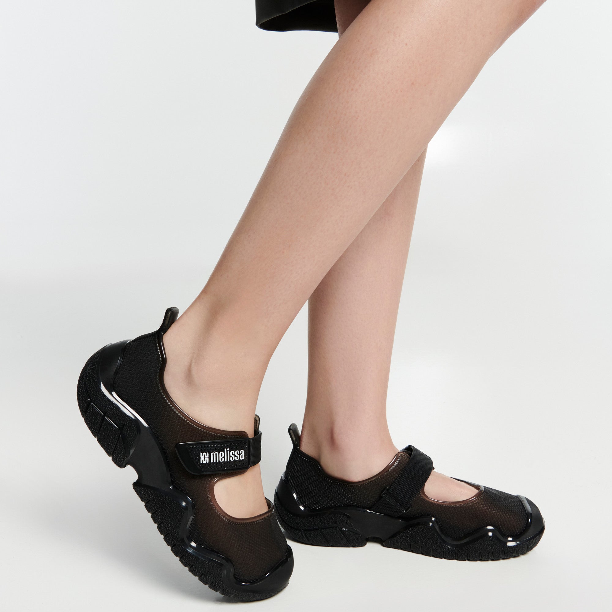 The DNA of Melissa is evident in the new Image maker flat, which is a hybrid between a feminine flat and a sneaker. Inspired by references from Melissa's past yet keeping up with market trends, this shoe aligns with the desires of Generation Z, who seek personality and authenticity reflected in their outfits. Sole in Full Plastic PVC, upper in Full Plastic PVC, injected PU insole, and Velcro closure.