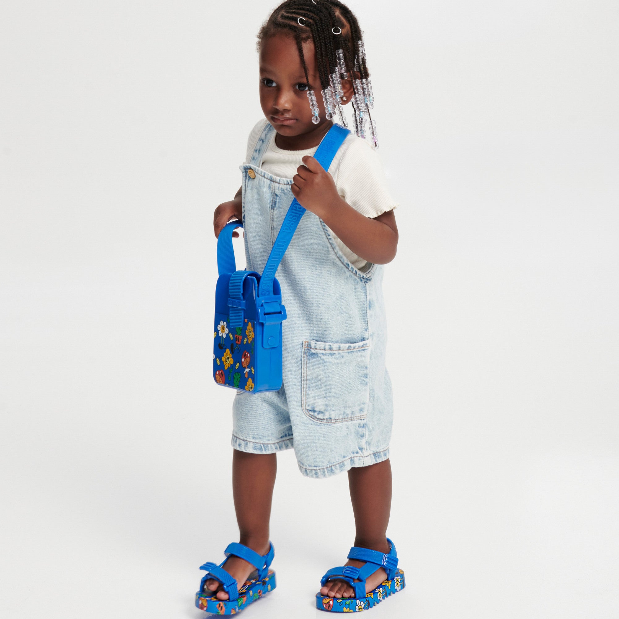 Complementing the sandals is a compact crossbody bag, crafted in Melissa’s signature flexible material, offering both durability and a soft-touch feel. The bag features a structured silhouette with a flap closure and an adjustable strap, making it practical for little essentials while maintaining a stylish, coordinated look. Perfect for playful outings or casual days, this set blends functionality with a cheerful design language, making it a delightful addition to any young wardrobe.
