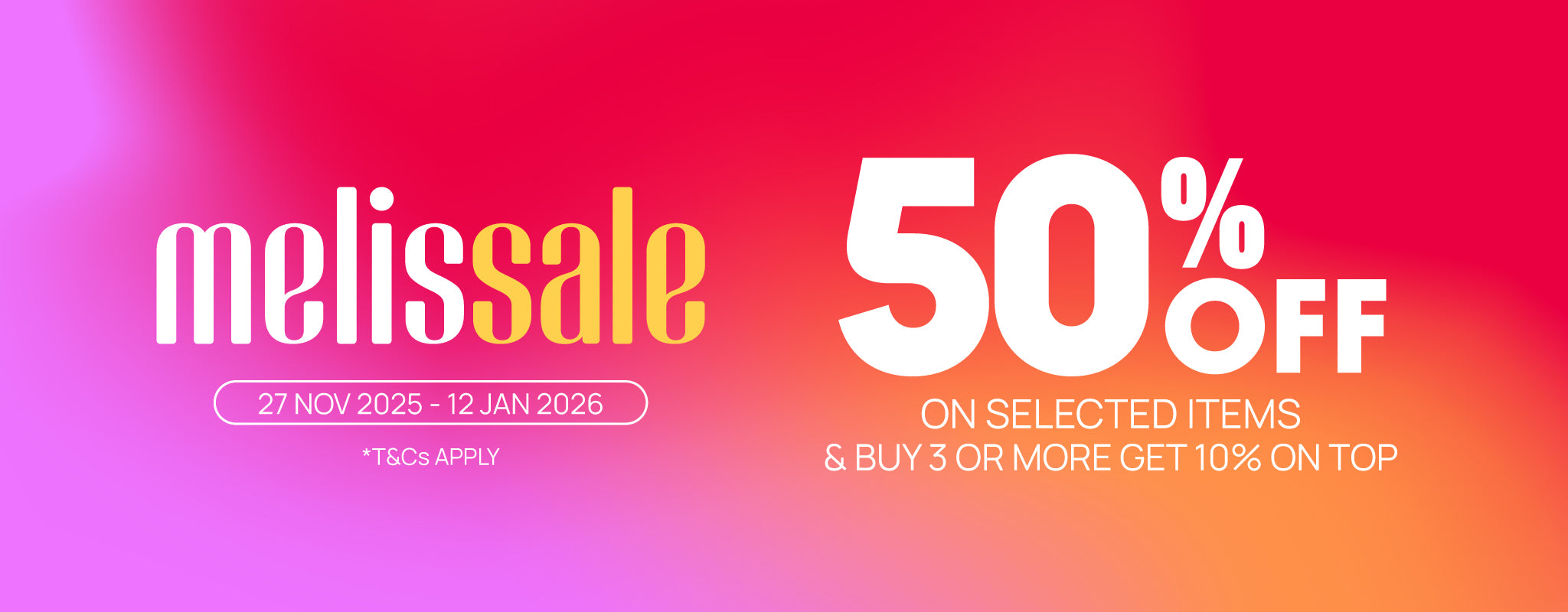 • Promotion 50% off, and buy 3 or more items for an extra 10% off. Applies to selected items.