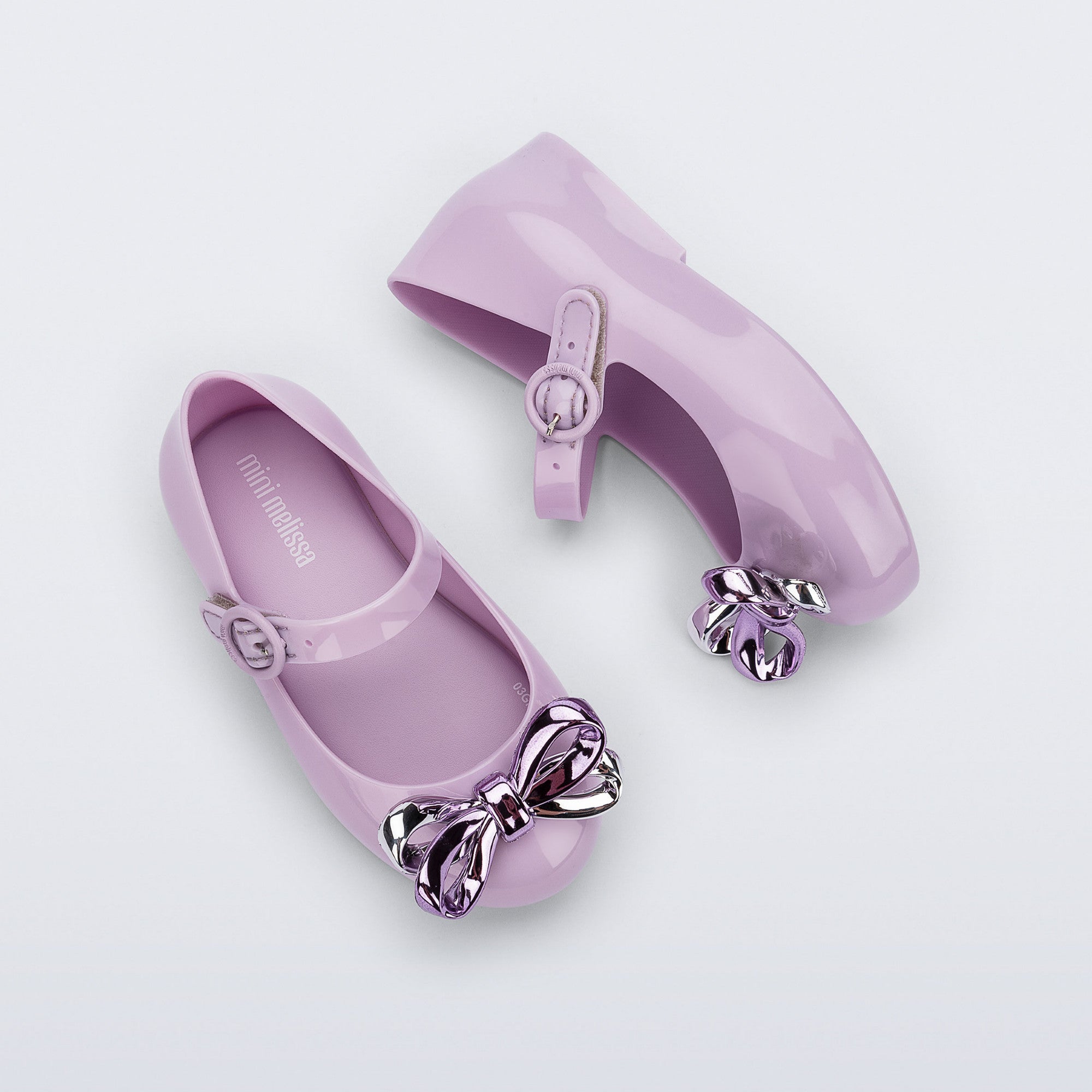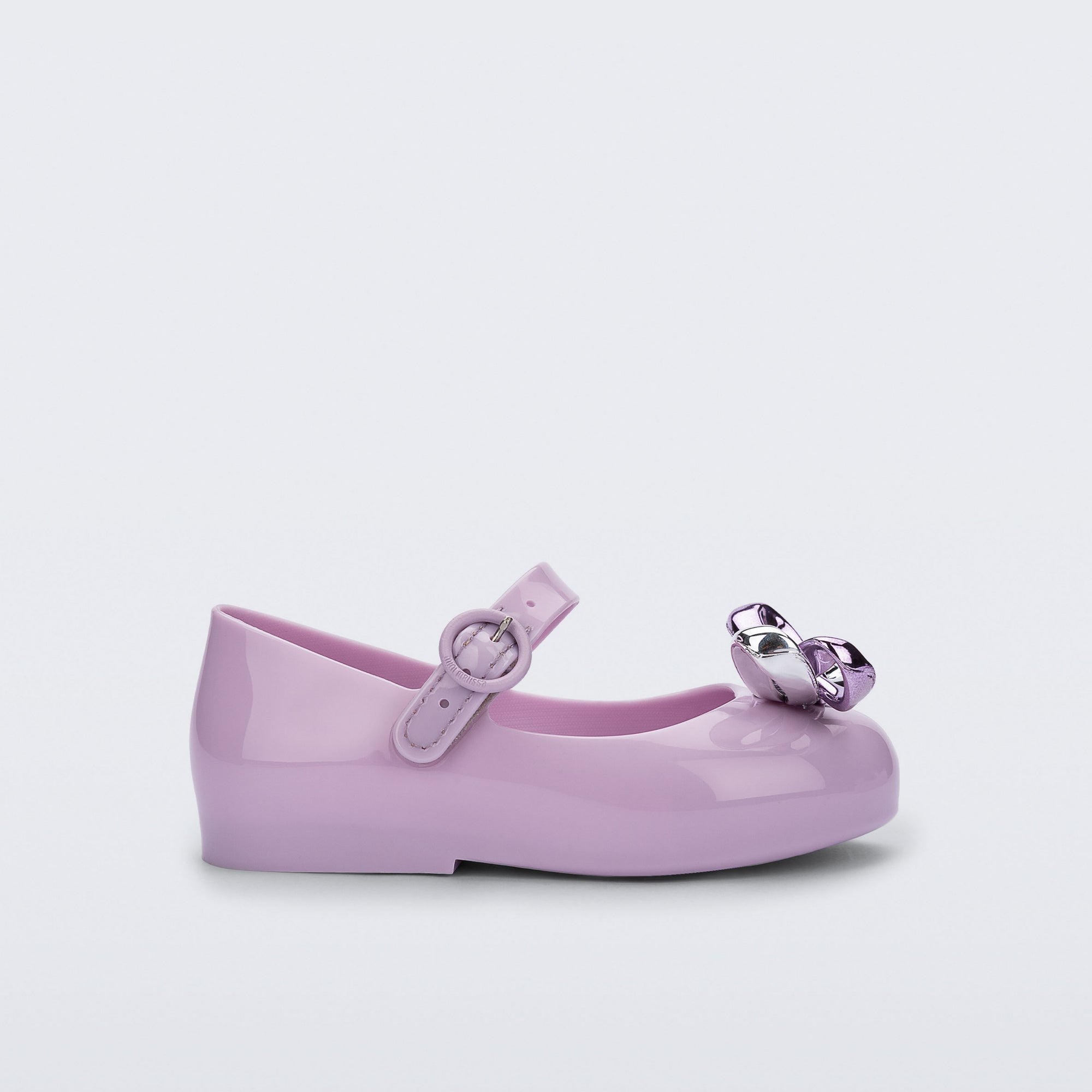 How sweet! With ballet flats being the must-have of the season, our classic Sweet Love is the perfect choice for an ultra-chic look. Its new layered bow with a metallic finish in two colors adds charm with its embellishment. Perfect for any girl’s wardrobe, it has the sophistication that Mini Lovers desire. One-piece in Full Plastic PVC and Greenflex insole with silk-screen printing, glued. Velcro closure with metal buckle embellishment, riveted. Nylon bow embellishment with metallization, riveted to the upper.