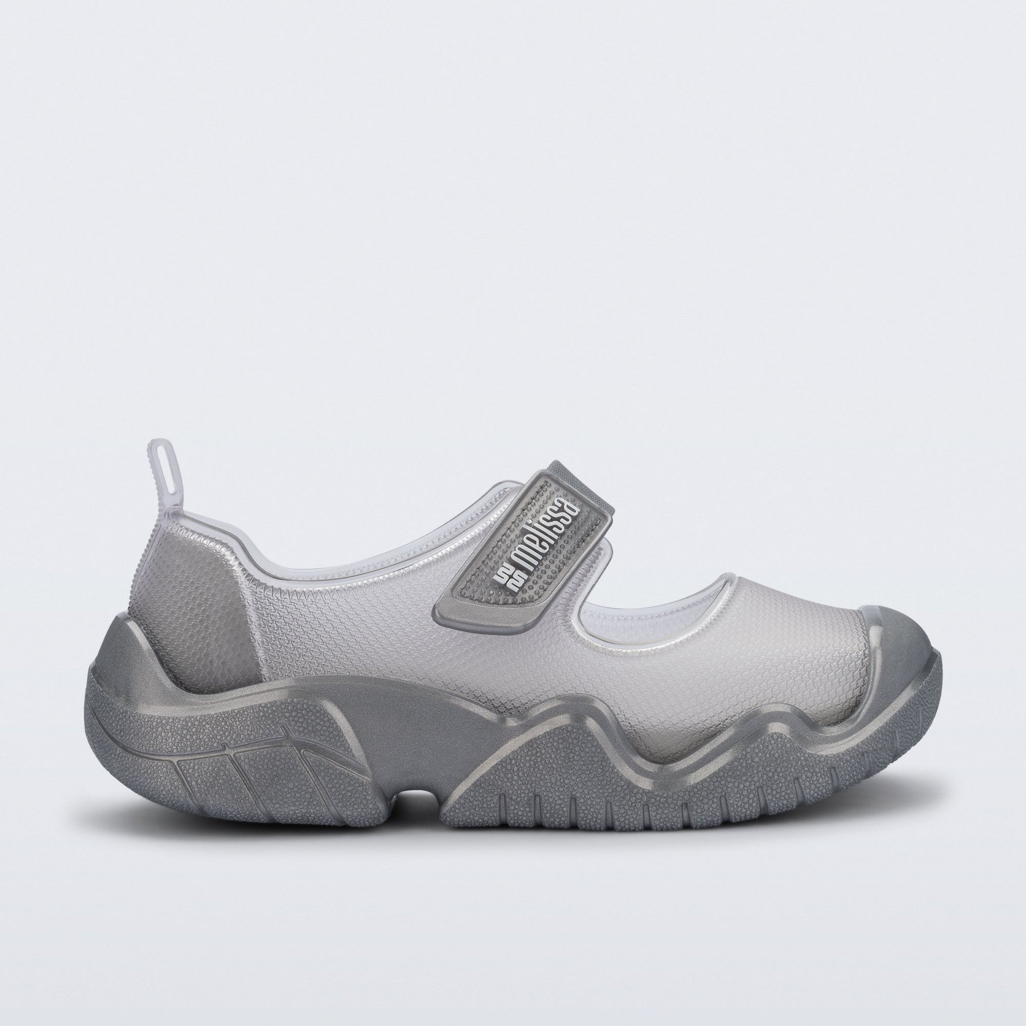 The DNA of Melissa is evident in the new Image maker flat, which is a hybrid between a feminine flat and a sneaker. Inspired by references from Melissa's past yet keeping up with market trends, this shoe aligns with the desires of Generation Z, who seek personality and authenticity reflected in their outfits. Sole in Full Plastic PVC, upper in Full Plastic PVC, injected PU insole, and Velcro closure.